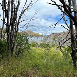 Wir fahren an einem See vorbei - dann eine Tourisreninfo - corredor de los lagos - es sind also mehrere und gleichzeitig Nationalpark. Das andere Ufer ist gut belegt, auf unserer Seite sitzen die Leute in der Badehose/Bikini an den Bachläufen. Dann See links und überall Autos. Aber es ist halt Sonntag! Wahnsinnig viele Leute an den Ufern. Das Gleiche am nächsten See, hier sogar beidseitig Autos abgestellt.