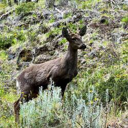 Eine zeitlang dominiert Büschelgras die Ebene, In Senken stehen entlang Flussläufen immer Laubbäume oder Büsche. Ich erkenne Weiden und Pappeln. Nadelbäume sind eher weiter weg vom Wasser.