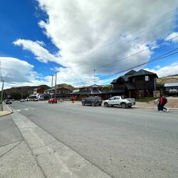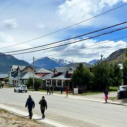 Es ist schon nach acht, ich dusche rasch (Duschkopf ist verkalkt, wenig Druck, schlecht regulierbar warm/kalt, verzichte auf Kopfwäsche, rasiere mich aber) und gehe Essen, kleine Sightseeingtour inbegriffen. Der Ort ist sehr sauber, trotz vielen Hunden sehe ich keine Hundekegel hier an der Hauptstrasse. Viele Läden, aber auch viele Bäume, meist pappelartig oder Nadelbäume, ähnlich Föhre. El Calafate liegt in einer Senke, ist geschützter vor Wind und die Bäume bremsen auch noch. Ich muss sagen, ein hübscher kleiner Ort.