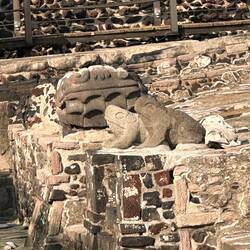 Das Modell ist sicher gut, was man hier ausgegraben noch sieht, ist eigentlich nur der unterste Teil mit den Schreinen, welche im Öffnungsschnitt gezeigt werden, alles andere darüber ist weg. Interessant ist noch die letzte Foto mit dem Totenkopfquader - sie hatten damals schon recht theatralische Anlagen! Aber irgendwie musste das Volk ja unterhalten bzw. zur Anbetung und zum Glauben gebracht werden! Ich denke übrigens gilt das heute auch, es gibt hier viele martialisch gekleidete Leute, der Tod läuft am Weihnachtsmarkt neben anziehbaren Engelsflügeln für Foto’s mit herum, neben anderen Weihnachtskobolden - aber es gibt ja hier auch den Tag der Toten … - man lebt das hier anders, irgendwie mehr Bestandteil des Lebens, der Tod.Read more