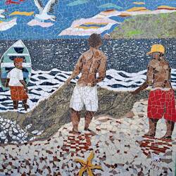 Vor dem Aquarium wartet man auf weitere Mitglieder oder erholt sich vom Weg vom Bus/Taxi hierher -man schwatzt und ich verstehe echt nicht gerade viel, vor allem wenn sie schnell reden! Ich lasse das Aquarium aus und setzte mich weiter oben an einem Strand in einen Steinstuhl. Auf der Mole wird gearbeitet - wie ich dann aus einem Gespräch von Funktionären entnehme wird das das Sylvester-Feuerwerk hier. Am Strand liegt eigentlich keiner auf einem Tuch, auch hier ist wie in Acapulco der Stuhl Trumpf. Teile des Strandes sind schon abgesperrt, anscheinend für den Abend. Hinten stehen Pickups mit Stühlen/Nachschub. Wie das dann gehandhabt wird, keine Ahnung, ich mache mich auf zum Leuchtturm und kann da auch das Fort besser sehen.