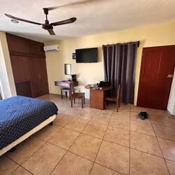 Ich kehre dann um, will meinen Rucksack holen. Gehe noch kurz in die andere Richtung, da ist mit Flanieren aber nicht mehr viel. Hole den Rucksack und mache mich auf den Weg. Einmal denke ich ich bin da bei Nummer 6, doch Google sagt nein, latsche weiter, nur 5 Minuten und informiere Jorge. Der steht in seinem Vorgartenpuff, lässt mich hinein und geht in den ersten Stock. Mein Zimmer ist gehen die Strasse - es ist aber erstaunlich ruhig hier.
