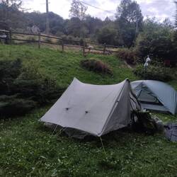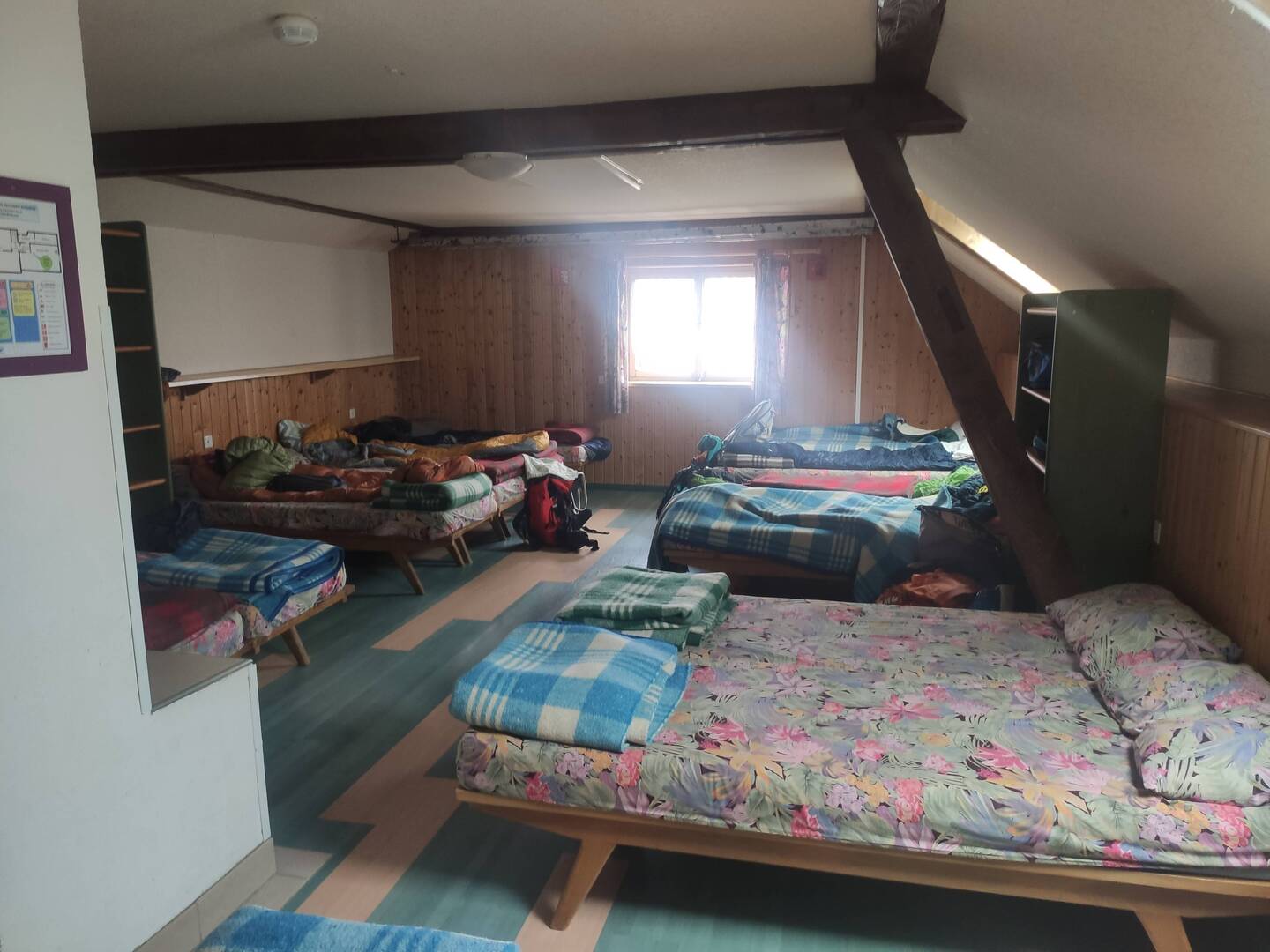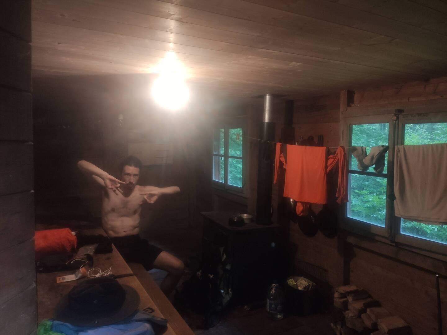Après cette journée, impossible de se projeter en tente, on a trouvé un refuge en dur, avec un foyer pour faire sécher les affaires tant bien que mal. Littéralement tous nos habits étaientLæs mere