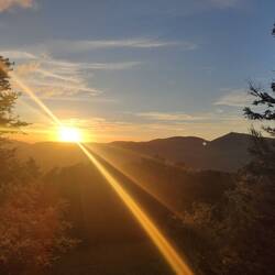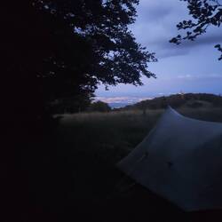 Puis on file au sommet du Molkenrain pour planter la tente face au coucher de soleil sur le Grand Ballon (qu'on voitLæs mere