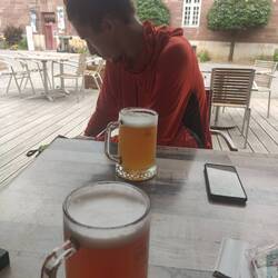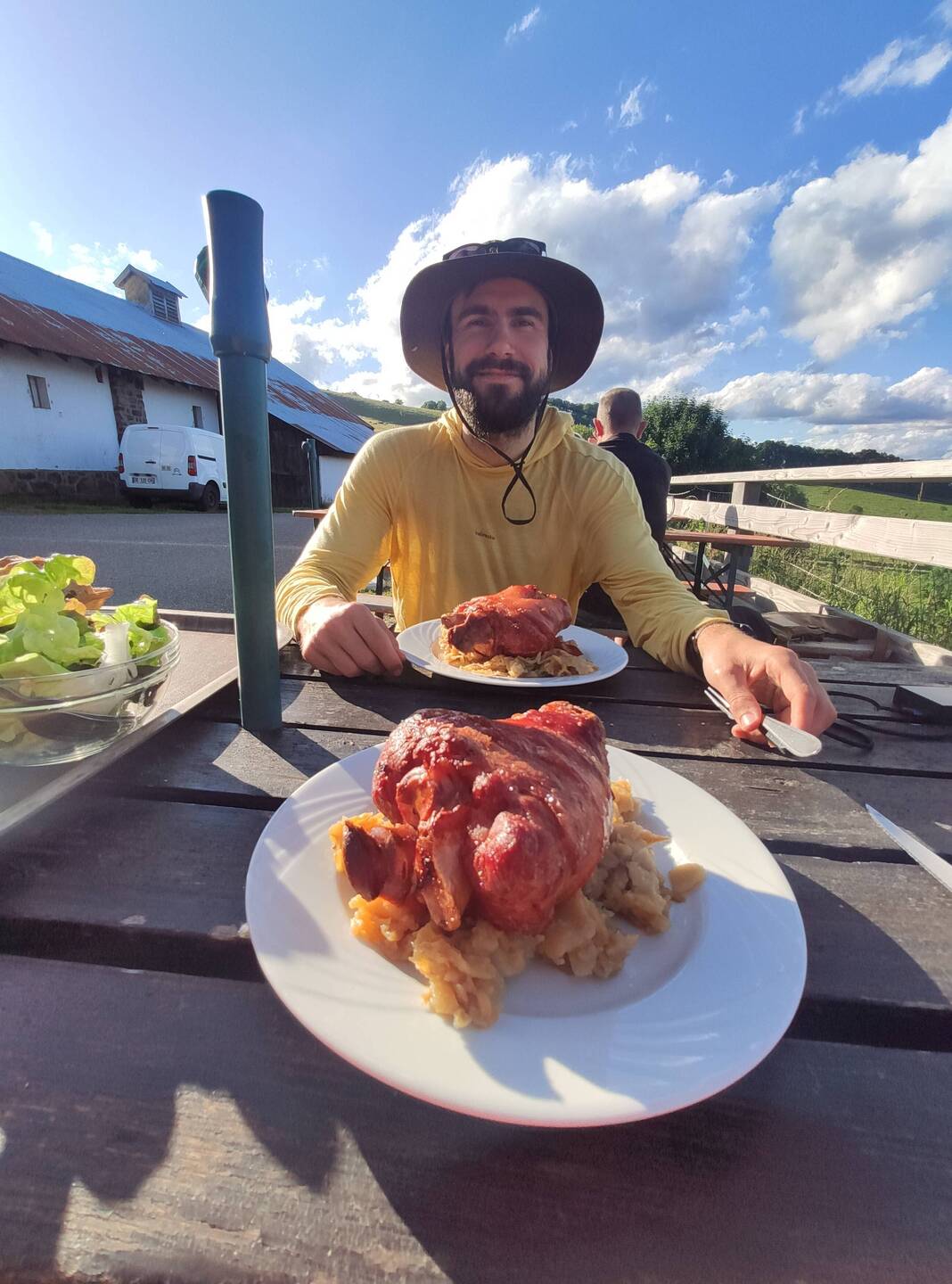 Un jarret de porc avec une sauce au munster chacun, on a des kilos à reprendre !