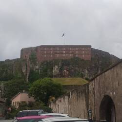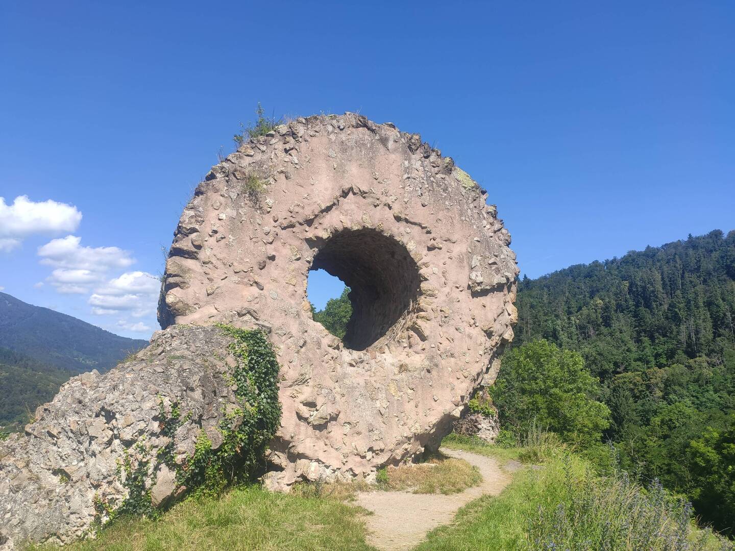 Le donut qu'on voit, c'est une tranche du donjon médiéval de l'époque où le château existait, tout s'est effondré et ce morceau reste un vestige important