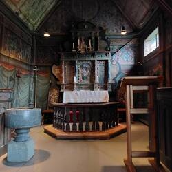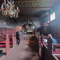 Wir haben die alte Kirche Røldal besucht. Eine kleine dunkle Kirche, wirkt bei Regen und Nebel etwas unheimlich, jedoch wird, wie wir es gesehen und vermuten noch heute darin geheiratet.