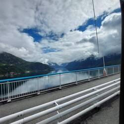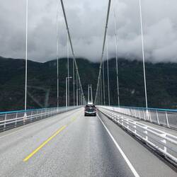 Wir sind mal wieder unterwegs zum nächsten Ziel. Hier konnten wir einer der größten Hängeseilbrücken Norwegens befahren und hatten einen fantastischen Ausblick auf den Hardangerfjord.