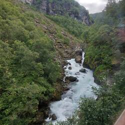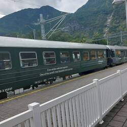 Heute sind wir mit der Flåmbahn von Flåm nach Myrdal und wieder zurück gefahren. Auf der 20km langen Strecke hatten wir eine schöne Aussicht und konnten Tunnel und Wasserfälle bestaunen.Read more