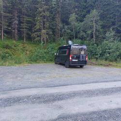 Nachdem wir gegen 24 Uhr die Fähre verlassen haben, haben wir uns in Richtung unseres ersten Zieles begeben. Unser erster Schlafplatz haben wir direkt am Wasser, beim Venneslafjorden gefunden.