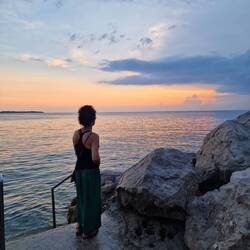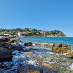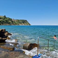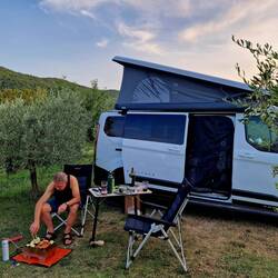 Wieder in Slovenien erreichten wir gegen Mittag einen kleinen Campingplatz in Piran. Hier aßen wir erst gemütlich zu Mittag und relaxten und badeten anschließend bis zum Abend. Dann machten wir unsLeia mais