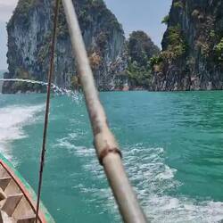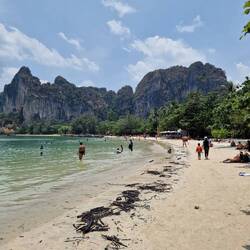 Mit dem Roller machten wir uns auf den Weg nach Ao Nang, wo wir uns zunächst mit einem Longtailboottaxi zur Railey Bucht fahren ließen, dort bis zum Nachmittag badeten, lasen und relaxten.