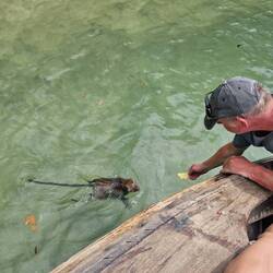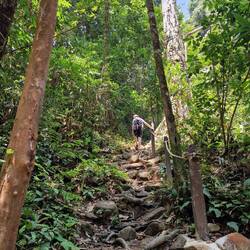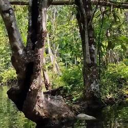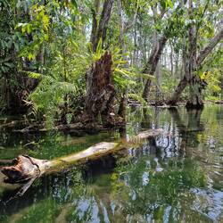 Da wir schon früh wach waren und die Temperaturen morgens noch recht angenehm waren, beschlossen wir, eine kleine Wanderung zum Big Tree zu unternehmen. Irgendwie hatten wir uns im Dschungel etwasLue lisää