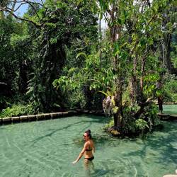 Früh morgens wurden wir zu unserer 2 Tages Tour in den Khao Sok Nationalpark abgeholt. Nach einer Fahrt durch den üppigen Regenwald stoppten wir als erstes für ein erfrischendes Bad in einemLue lisää