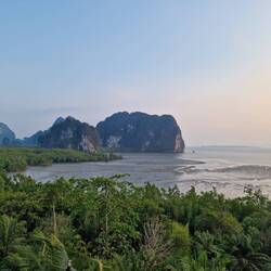 Nach einem letzten Frühstück in unserer Unterkunft, die so herrlich abgelegen war, ließen wir uns von einem Taxi zu unserem Zwischenstopp nach Ao Lueck an der Ostseite der Andaman Sea fahren. HierLue lisää