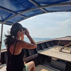 Beteits um 6.40 Uhr trafen wir uns, um eine morgendliche Safari mit unserem Boot zu unternehmen. Wir sahen viele Makaken, einen Gibbon und ein Hornbillpärchen. Nach dem anschließenden FrühstückLue lisää