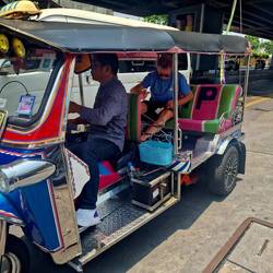Heute ging es wieder mit dem Tuk Tuk Shuttle zur Metro, um zum Pier des Flusses Chao Phraya zu fahren. Hier kauften wir uns ein Flussticket und besuchten als Erstes den am westlichen Ufer gelegenenLue lisää