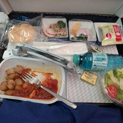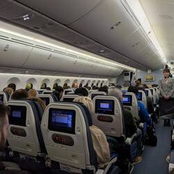 Der Flug war sehr durchwachsen, wir hatten sehr viele Tourbolenzen. Essen gab es daher erst um Mitternacht 😜