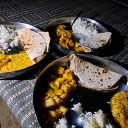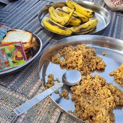 Nacheme kurze Schreckmoment vorem Zmorge womer gmeint hei dases nume Porridge het, si de die biz ize beste Chapati vom Trek ufem Buffet gstande (z'erschte mal dases überhoupt Uswahl zwüsche 2 SacheOkumaya devam et
