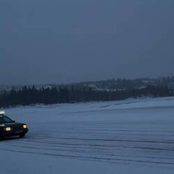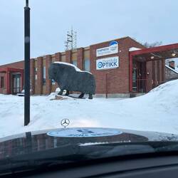 2. Bild - Moschusochse vor dem Auto her getrieben -