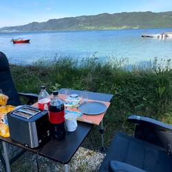 Ein wirklich schöner Campingplatz direkt am Wasser /Fjord …..umgeben von Bergen ….und angeln direkt am Camper