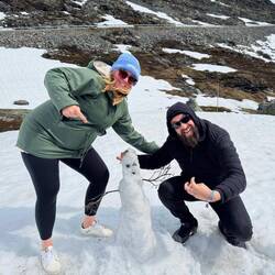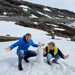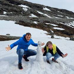 Wir basteln einen Yeti aus Schnee. Da andere Teams ebenfalls tolle Yetis gemacht haben, kommen die gleich mit in den Footprint