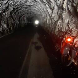 Vom Campingplatz Agora Farmhouse 🤩 sind es 20 km im munteren auf und ab der OffRoad-Gravelroute. Koman ist deadend, weil nach dem 500m Tunnel nur noch der Hafen ist. Von dort fahren die FährenBaca lagi