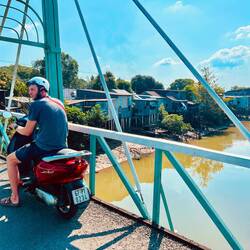 Im Mekong Delta aacho, lehre mir mit Chau Doc ändlech chli z’echte Vietnam kenne - völlig authentisch und so guet wie null touristisch: Keni fancy Restis mit Burger und Pizza, sondern hunderti vo Plastikstuehl Beizli am Strasserand, wo me cha Suppe und Sandwich ässe, und tonnewiis „Cà Phês“, wo d‘Vietnamse dr ganz Tag Iiskafi und Tee trinke 😄! D’Lüt chöi so guet wi kei Änglisch, si aber immer mega härzlech üs gägenüber 🥰!