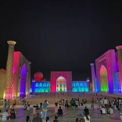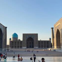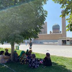 Le madrase di piazza Registan e le sciure venute dalla montagna, tutto è pieno di vita.