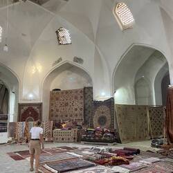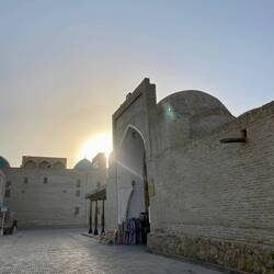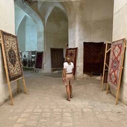A Bukhara il pulviscolo dei tappeti si mischia alla sabbia del deserto, offuscando la vista e rendendo la città una visione onirica.