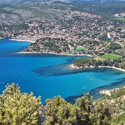 Eine der reizvollsten Landschaften Südfrankreichs: Die schroffe Calanque-Küste südlich von Marseille mit 600m hohen Kalksteinfelsen, malerischen Buchten und türkisblauem Meer.