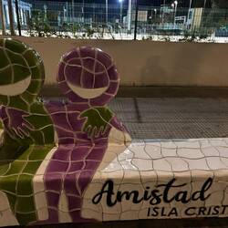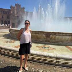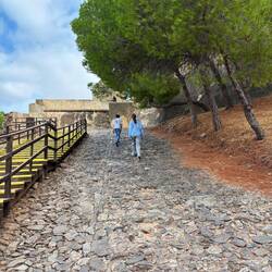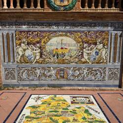 Unser geplanter Parkplatz war voll 🅿️, aber Matteo hat um die Ecke ein Parkhaus als gute Alternative ausfindig gemacht. Von dort aus sind wir losgelaufen, erst durch die Jardines del Prado de San Sebastián 🌳 und dann weiter zum Plaza de España 🏛️. Der riesige Platz war wirklich beeindruckend. Von der Terrasse oben hatten wir einen tollen Blick 👀, danach sind wir runter, haben eine Runde gedreht, die Mosaiken angeschaut 🎨 und uns am Brunnen kurz erfrischt 💦.