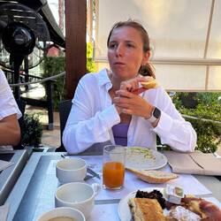 Um 18:00 Uhr finden wir uns auf dem doch sehr sonnigen Tennisplatz ein ☀️. Es ist zwar Asche, aber an die Bedingungen müssen wir uns trotzdem erst gewöhnen. Matteo gibt ein paar Coaching-Tipps, ich schlage zwei Bälle in die Pampa ohne Chance auf Wiedersehen 😂.