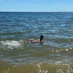 Die Sorge war unbegründet, es weht zwar etwas, aber das ist bei der Wärme durchaus eher positiv. ☀️ Wir lesen, schlafen und rätseln. Beim ersten Baden müssen wir feststellen dass der Atlantik, wie auch in unserer Erinnerung recht frisch ist, eher Ostsee bzw Nordsee Niveau als Mittelmeer, aber das kann uns natürlich nicht abschrecken.