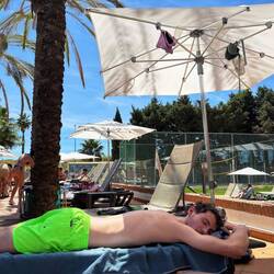 Heute haben wir aus unseren Fehlern gelernt und bleiben nach dem Frühstück erstmal wieder direkt am Pool 🏖️. Auch, weil wir gegen Nachmittag noch einmal einen Strand im Nachbarort besuchen wollen, wo wir uns abends auch den Tennisplatz gebucht haben 🎾.