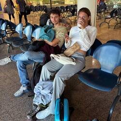 Die Sicherheitskontrolle 🚫 hält Handgepäck von Mamsel für Polizei 👮🏼 prüfpflichtig und auch Matteo soll noch mal den Rucksack vorführen…. 😳.