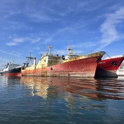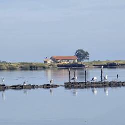 Vanochtend zijn Arnold en ik met het bijbootje naar de stad Aveiro gevaren. Dit door een bijzonder stuk natuur van zoute moerasdelta. Onderweg hebben we naast grote, oude roestige vissersboten ook flamingo's gespot. Een teken dat we steeds zuidelijker komen.