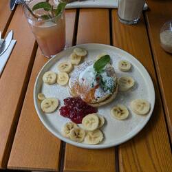 Am Morge si d'Sanda und ig ga spaziere. Näre hetts mau äs richtigs Zmorge gä.