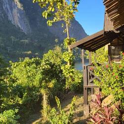 Damit wir heute mal wieder eine ruhige Nacht ohne Motorradlärm & Co. haben, haben wir uns in Nong Khiaw ein etwas abseits gelegenes Bungalow gegönnt.