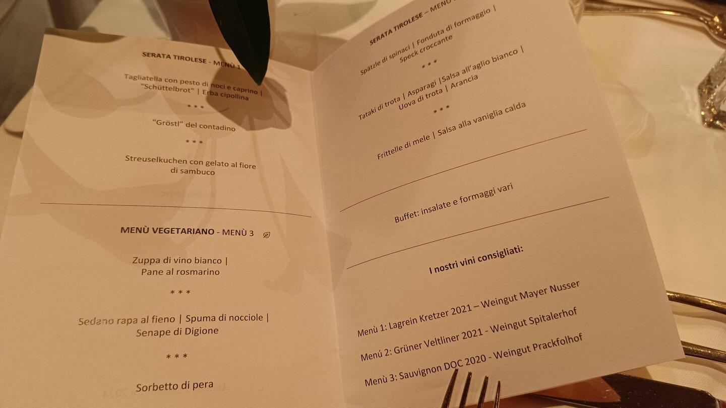Questo menù si è basato in parte su pietanza a base di selvaggina, in parte su pietanze vegetariane
