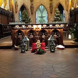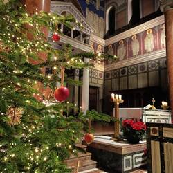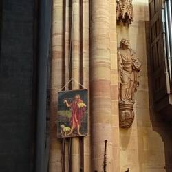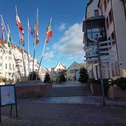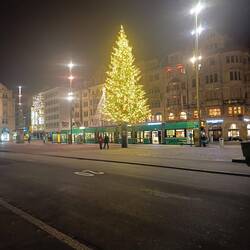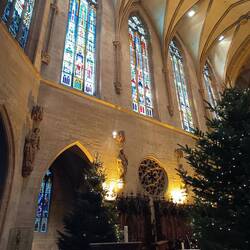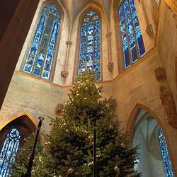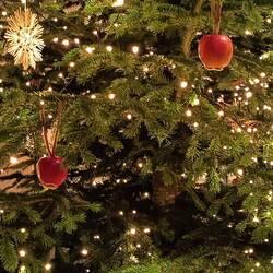 Andando in centro per una passeggiata serale, ci imbattiamo in questa Chiesa (Liebfrauenkirche) dove è presente in albero che in luogo delle classiche (almeno per noi) palle ha appese delle meleBaca lagi
