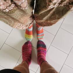 Heute ging es vom Monte Tinnari zur Costa Paradiso. Zwischendrin ein Zwischenstopp am Strand. Da es am Abend etwas Kühler wurde haben wir die Strümpfe von Oma Ele ausgepackt. 😁
