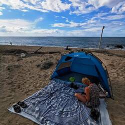 Heute waren wir mal faul und haben einen Strandtag an unseren eigenen Strand gemacht. Am Abend gab es nur eine von Silkes kleinen Runden. 😅