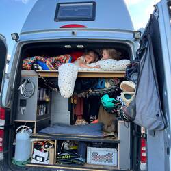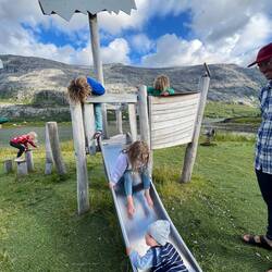 Leider hatten wir nicht so schönes schönes Wetter und konnten nicht alle sieben Schwestern sehen. Der Stellplatz ist aber super mit Feuerstelle, Bademöglichkeit und Spielplatz.