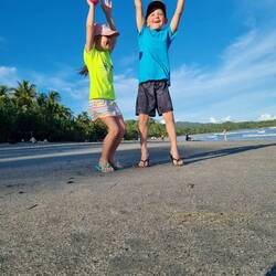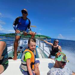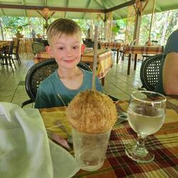 Wir haben viel Zeit am Strand und im Pool verbracht, haben den Ort erkundet und lecker gegessen. Tobi war tauchen und hat die Unterwasserwelt erkundet. Dabei gab es allerhand Fischschwärme, Bullenhaie, Weißspitzenriffhaie, Schildkröten uvm zu entdecken. Ich und die Kinder sind am Strand geschnorchelt und konnten auch hier Fischschwärme, Sandwürmer, Krabben und sogar einen Igelfisch (Gattung Kugelfisch) entdecken. Ansonsten gibt es im Hotel auch viel zu sehen. Am Pool gab es eine regelrechte Leguaninvasion, eine ganze Familie Affen und einen frechen bunten Vogel, der uns das Frühstück stibitzen wollte. Am Nachmittag haben wir am Strand Fussball gespielt und Einsiedlerkrebse gesammelt. Wir haben einen großen Kreis in den Sand gemalt und geschaut, welcher Krebs es am schnellsten schafft, diesen zu verlassen. Da wir jetzt an der Westküste sind, konnten wir auch wundervolle Sonnenuntergänge über dem Meer beobachten. So haben wir zwei ruhige und doch schöne Tage verbracht.Read more
