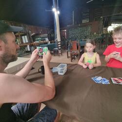 Am späten Nachmittag sind wir zurück. Marik und Tobi spielen noch Fußball und haben Unterstützung von Fernando, dem Hund der Lodgebesitzer. Wir spielen Uno und ruhen uns noch etwas aus. Marik und ich unternehmen noch eine kleine Tour auf dem Regenwaldpfad und entdecken wieder unsere Brüllaffen Kolonie. Obwohl die Kinder anfangs traurig waren, dass die Unterkunft keinen Pool hat, hat sich diese Lodge als Glückstreffer erwiesen. Tolle Natur, Brüllaffen, leckeres Essen, Ruhe und ein Fußballplatz! Was will man mehr...Read more