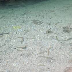 2. Überall riesige Pfützen/ Seen auf den Straßen. Wir müssen knietief, barfuß, im Stockfinstern (immerhin Taschenlampen haben wir dabei) durch die Seen laufen, die offenbar Zugang zum Meer haben. Um uns herum schwimmen Trompetenfische und wir sehen riesige Krabben.