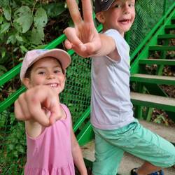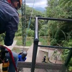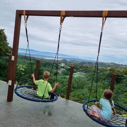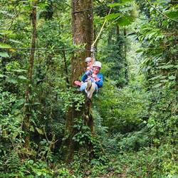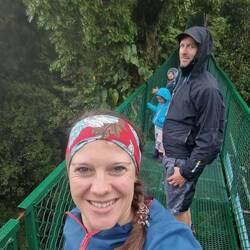 Nach einer ruhsamen Nacht bekommen wir heute unser Frühstück ins Zimmer gebracht. Wir frühstücken: Pancakes mit Schokolade, Rührei, Omelett und frische Früchte im Freien und starten danach in den Selvatura Park. Wir haben ein Ziplining- Adventure gebucht, auf welches wir uns schon seit Tagen freuen. Wir bekommen eine kurze Einweisung und werden direkt ans Seil gehangen. Es gibt 13 Ziplines auf 3,5 km Strecke und einen Tarzanswing. Die längste Zipline ist 1 km lang! Die meisten Lines können die Kinder sogar allein bewältigen. Nur bei den längeren werden sie entweder miteinander oder mit einem von uns als Doppelpack eingehängt, da sie sonst zu leicht sind und unterwegs " verhungern". Genau dies passiert Leo sogar einmal bei einer 300m langen Zipline. Sie ist zu leicht und bleibt genau in der Mitte stehen und hängt allein, viele Meter über dem Regenwald bis ein Guide sie "retten" kommt. Sie sieht es glücklicherweise entspannt und hält, während sie auf den Guide wartet, nach Tieren Ausschau. Wir haben alle viel Spaß und genießen das Fliegen über den immergrünen Nebelwald. An der vorletzten Station können wir optional den Tarzan Swing machen. Hierbei springt man von einer Plattform in die Tiefe und wird dann vom Seil aufgefangen, wobei man danach wie bei einer Schaukel hin und her schwingt. Tobi beginnt. Marik ist auch gleich Feuer und Flamme. Mir kribbelt es ein bisschen im Bauch, ich will aber nicht kneifen und springe als Dritte. Leonora möchte am Anfang nicht, schaut aber interessiert zu. Wir sehen ihren Konflikt, überreden sie aber nicht. Als ich in den Seilen hänge, möchte sie auf einmal doch mit springen und so stürzt sie sich als letzte ins Seil und hat dabei ein Grinsen im Gesicht. Wir sind unheimlich stolz auf unsere mutigen Mäuse und freuen uns, dass sie dabei genauso viel Spaß haben wie wir Großen. Der krönenden Abschluss ist die 1 Km Strecke, die wir im Doppelpack : Tobi/Marik + Ich/Leo durchsausen.