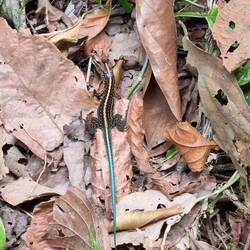 Die gelbe Schlange ist eine Unterart der Greifschwanzlanzenotter. Auch hochgiftig aber nicht aggressiv. Blitzlicht soll man beim Fotografieren vermeiden