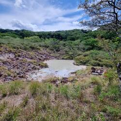 Wie geplant starten wir danach in den Nationalpark Rincon de la Vieja. Der Vulkan hier ist noch regelmäßig aktiv und somit gibt es viel zu entdecken. Wir laufen ca 7 km durch schönste Vulkanlandschaft, vorbei an blubbernden Schlammpfützen, über heiße Bäche und dampfendes Gestein. Wir können sogar in einen kleinen aktiven Krater schauen, der mächtig qualmt und stinkt. Es riecht überall nach faulen Eiern und wir sehen wieder allerhand Tiere. Wir entdecken die Spuren einer Tapir Familie. Eine österreichische Familie zeigt uns Fotos eines Tapirs mit seinem Jungtier. Leider haben wir diese völlig übersehen, da wir hier schlicht und einfach nicht damit gerechnet haben. Obwohl wir nochmal zurück gehen, bleibt uns der Blick auf die gut getarnten Tiere verwehrt. Nichts desto trotz genießen wir die kurzweilige Wanderung durch die abwechslungsreiche Landschaft.